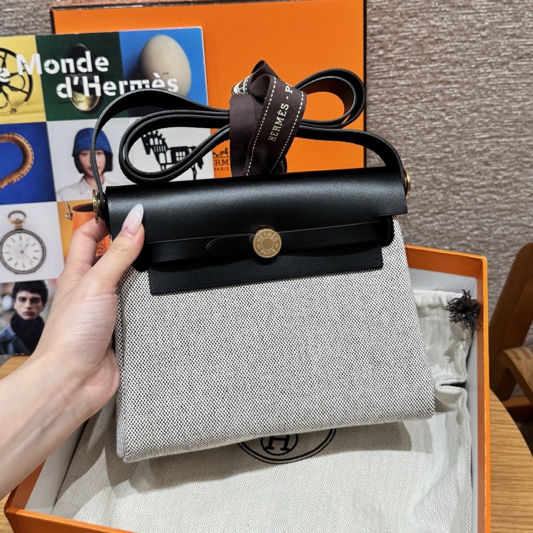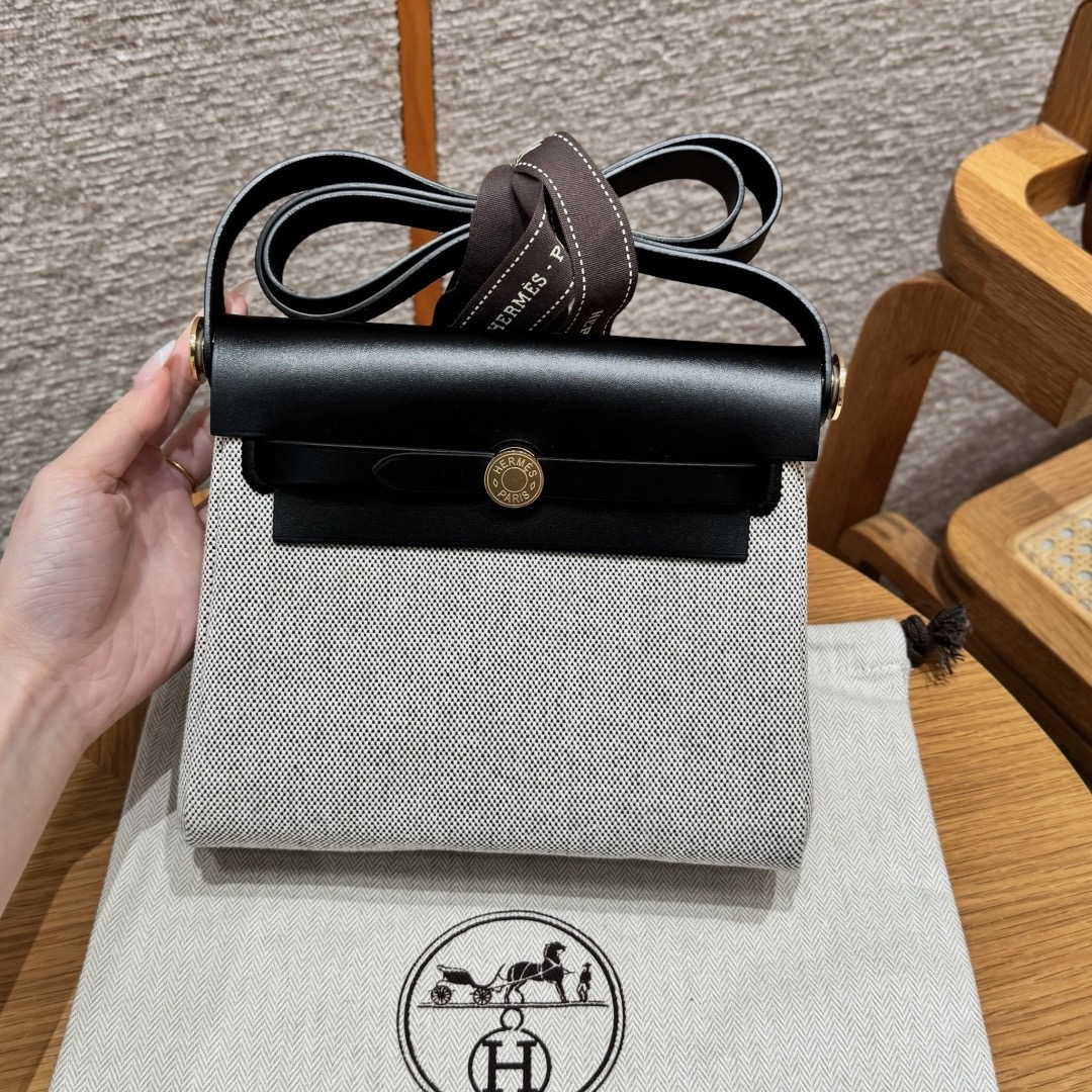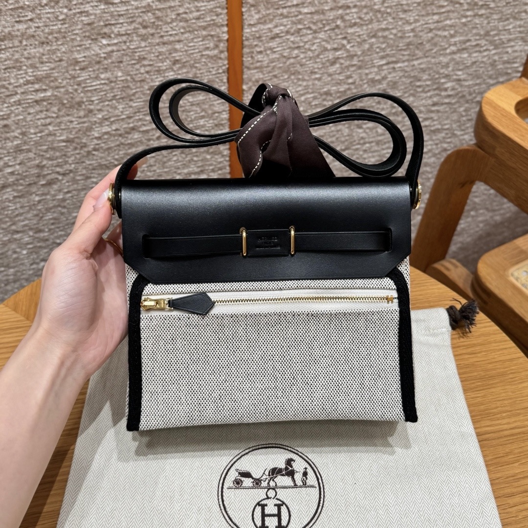 에크루 블랙 캔버스 금장 에르백 미니 (20*17*7cm)