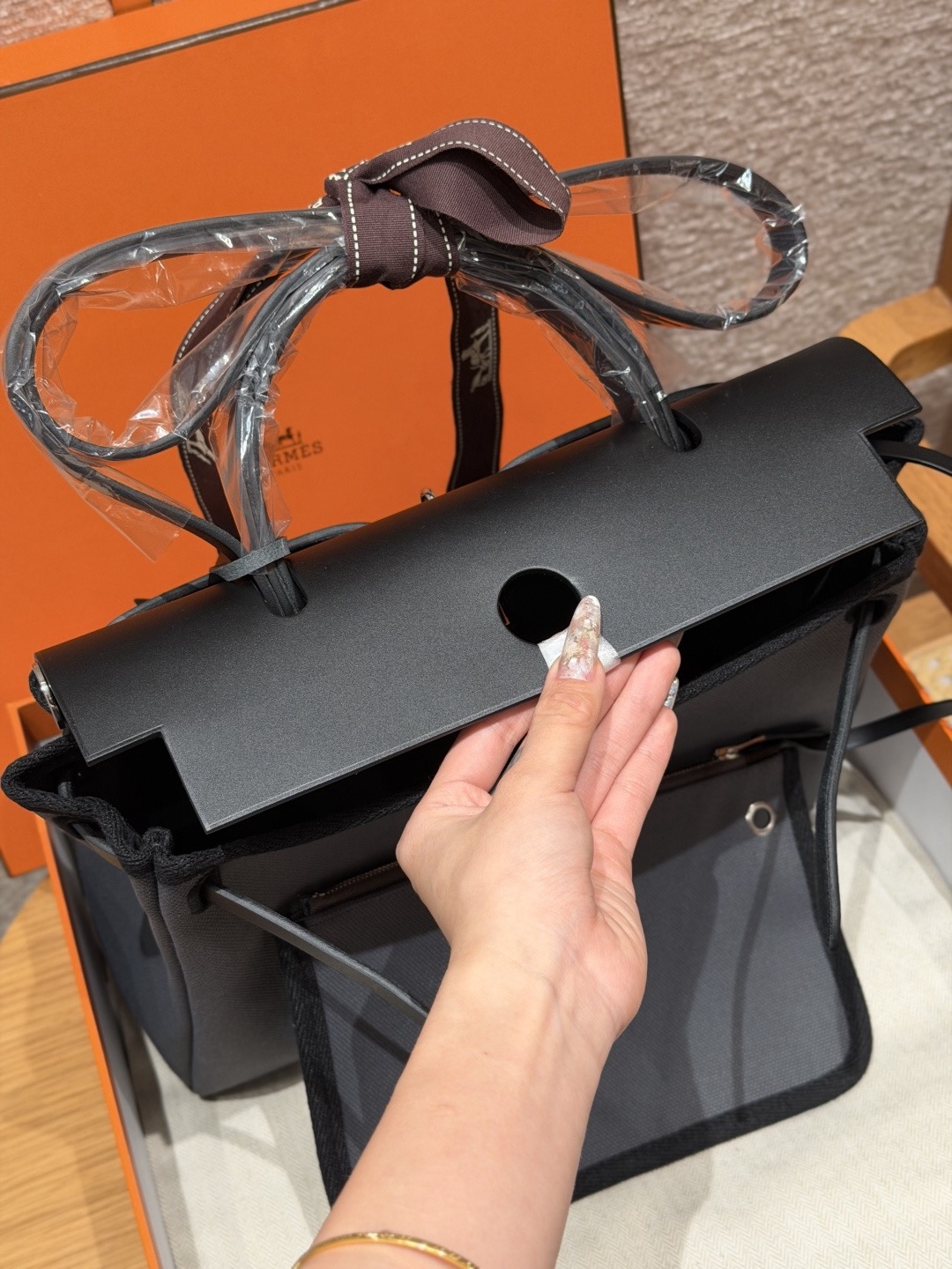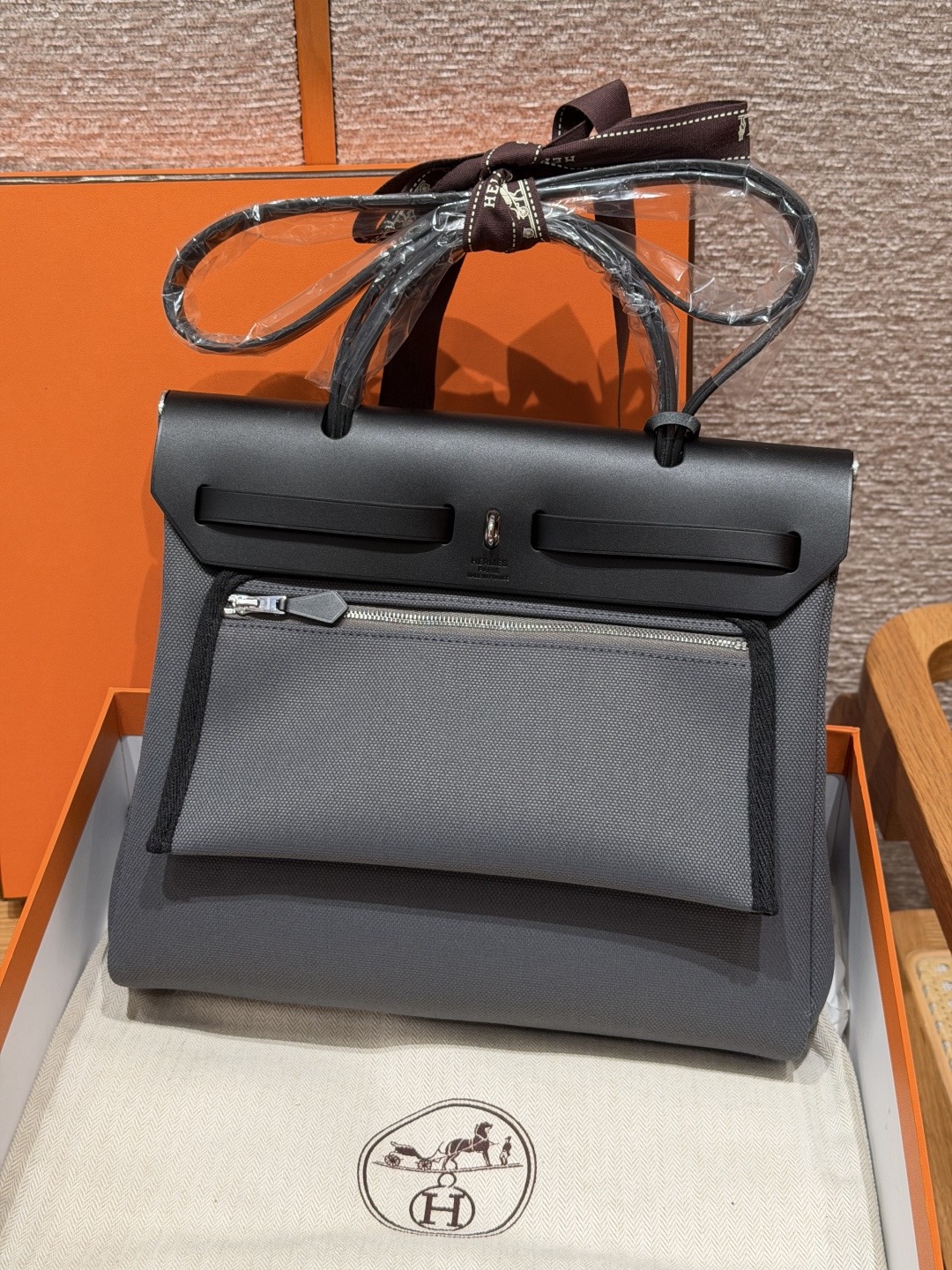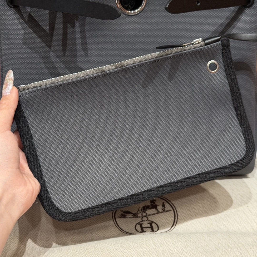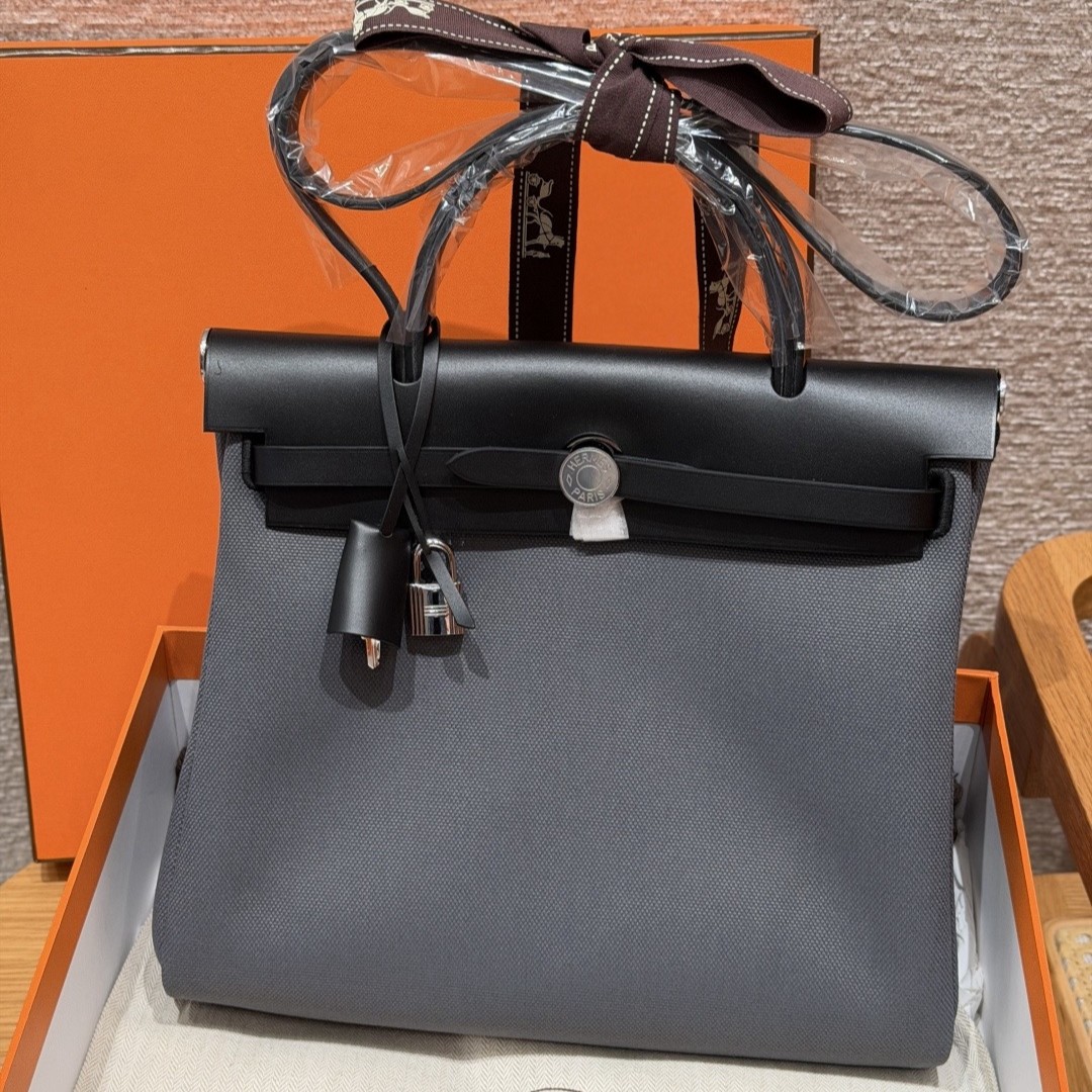 아르두아즈 블랙 캔버스 소가죽 은장 에르백 (31*25*10cm)
