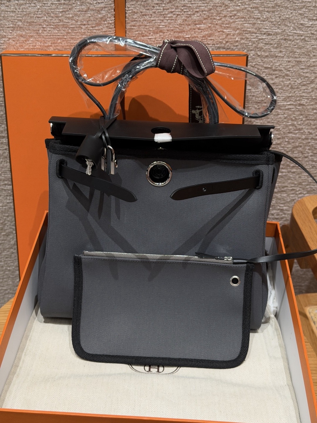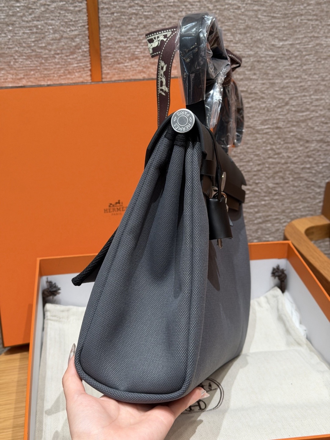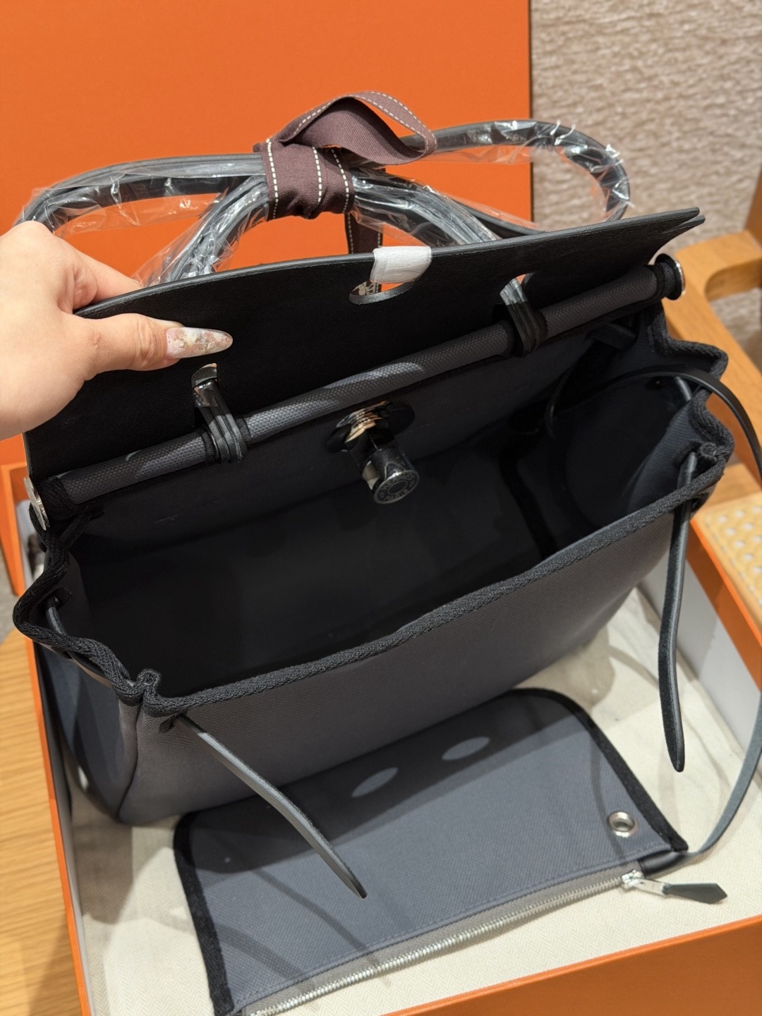 아르두아즈 블랙 캔버스 소가죽 은장 에르백 (31*25*10cm)
