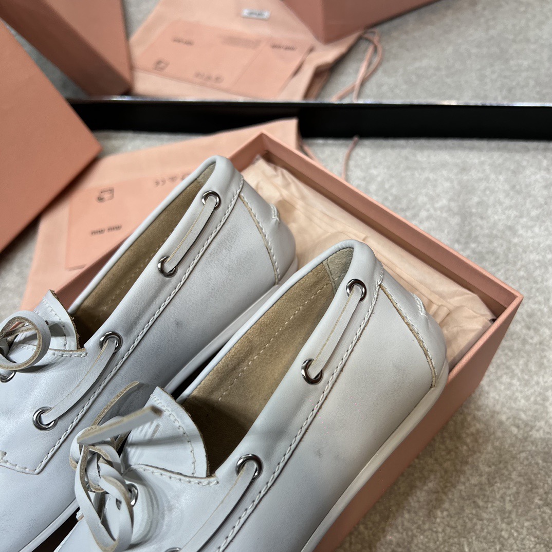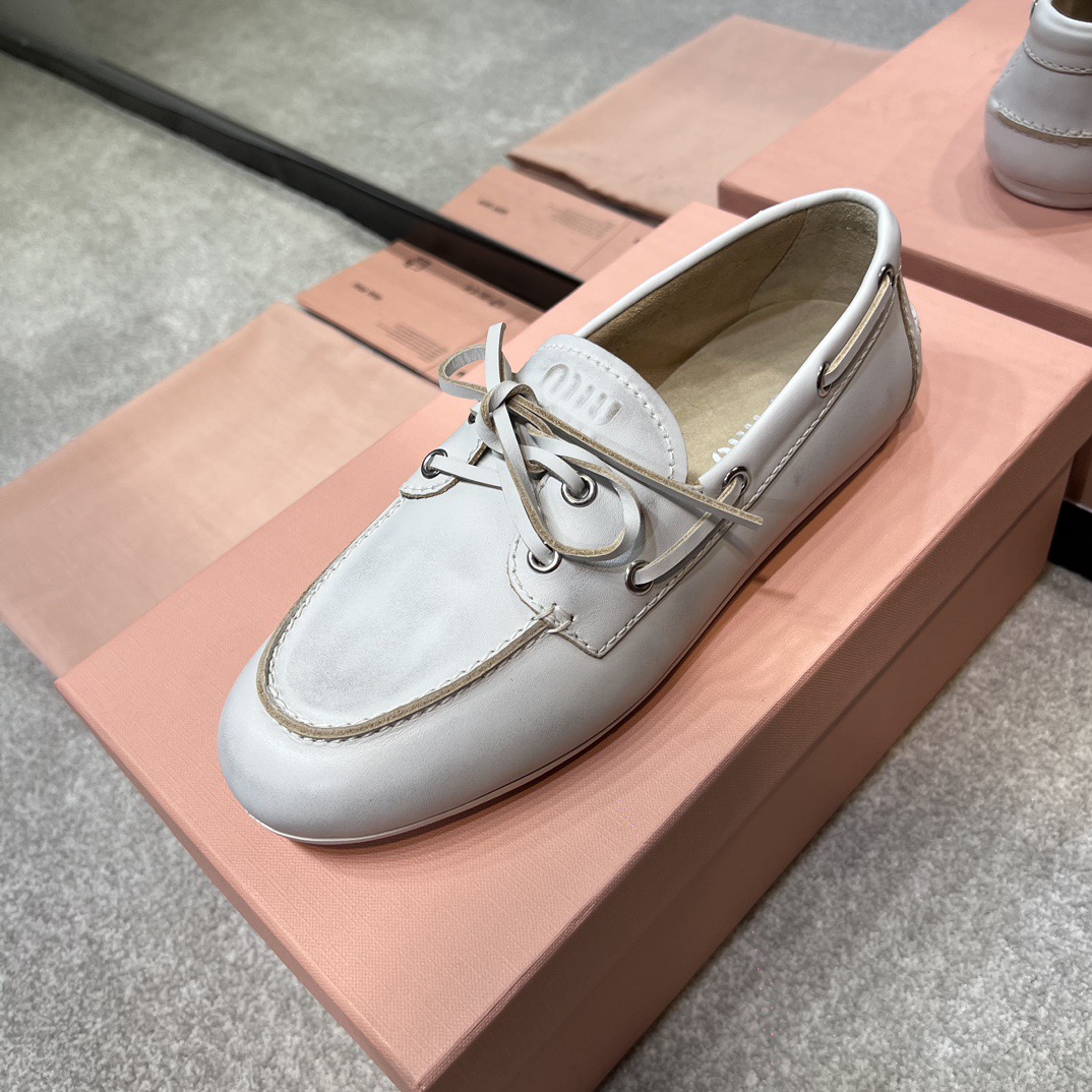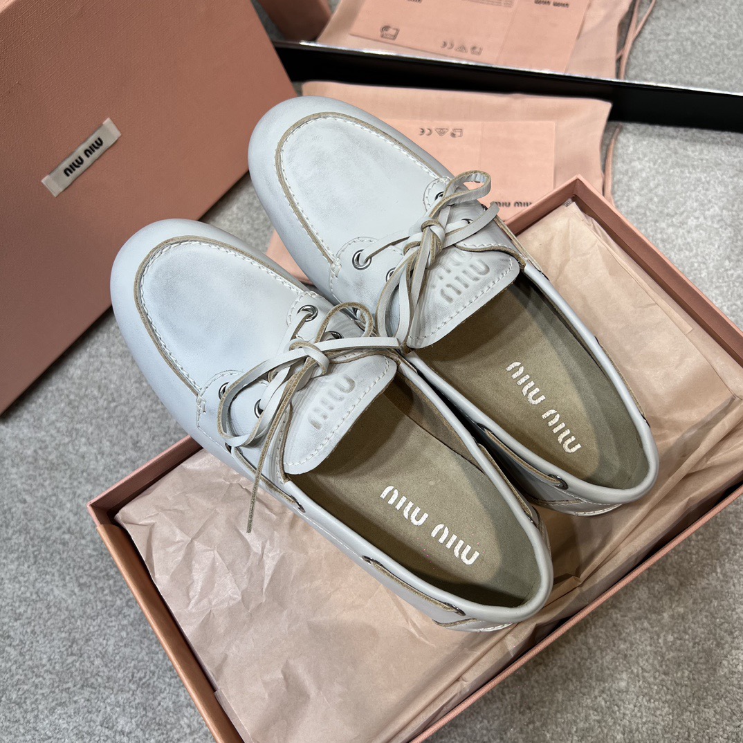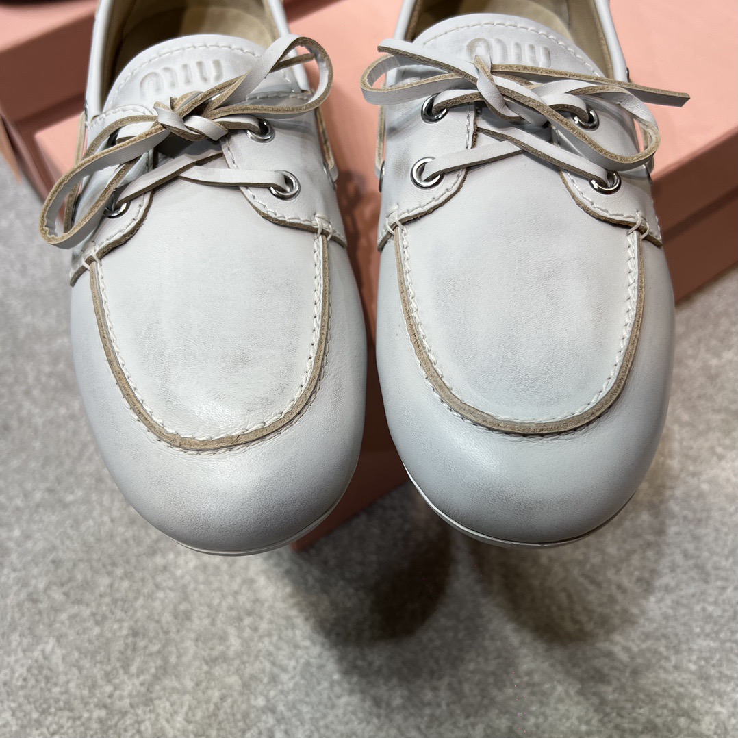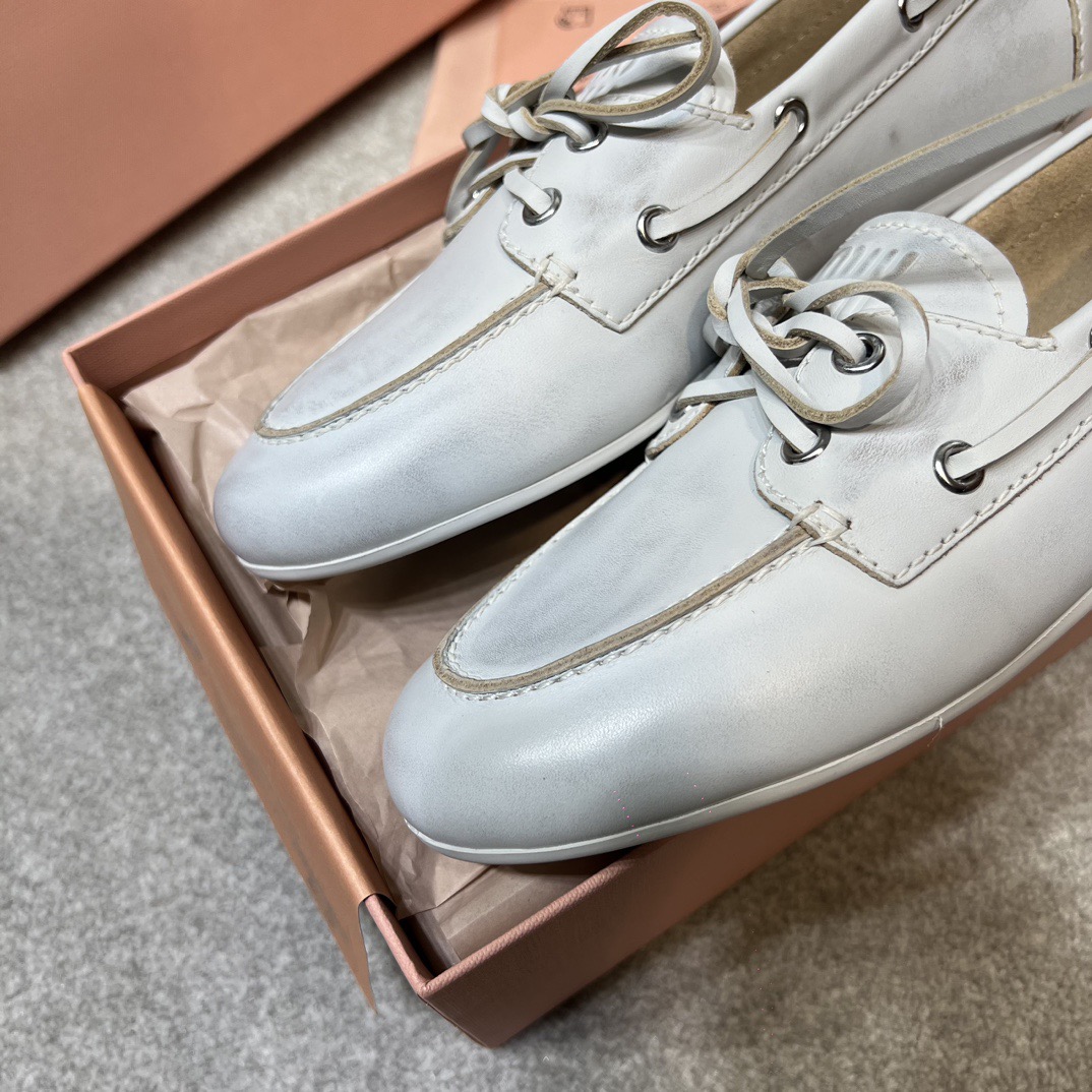 미우미우 블리치드 가죽 보트 슈즈