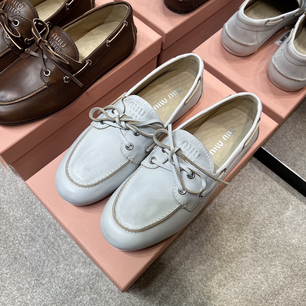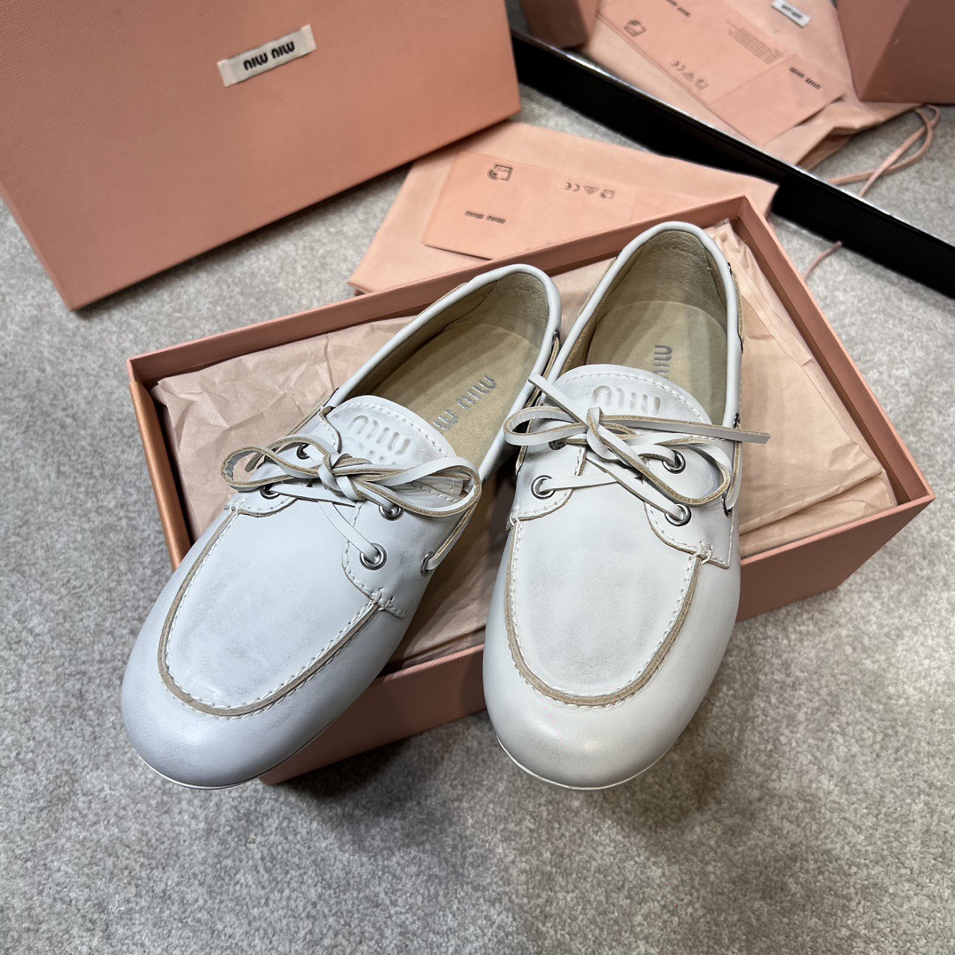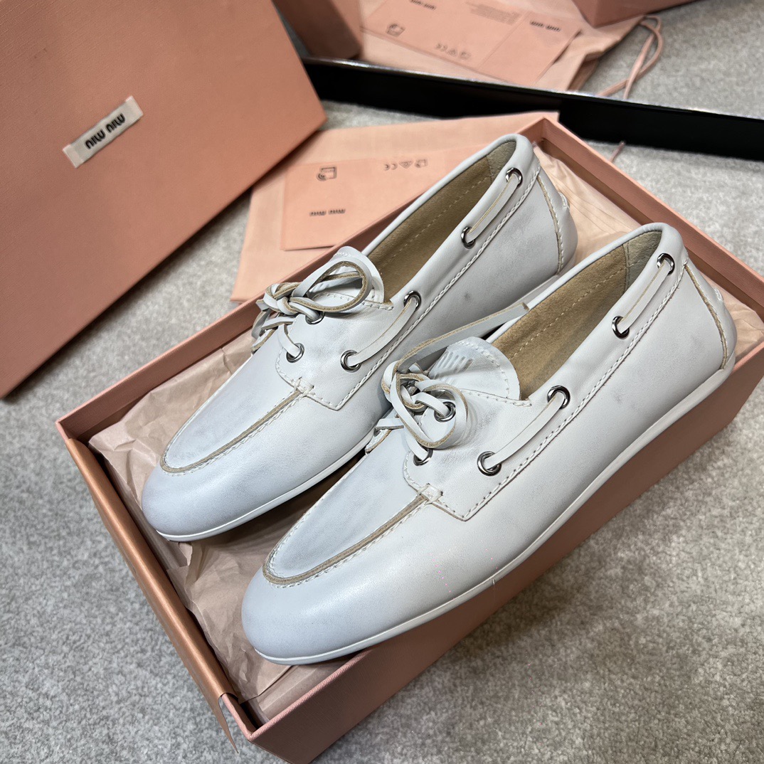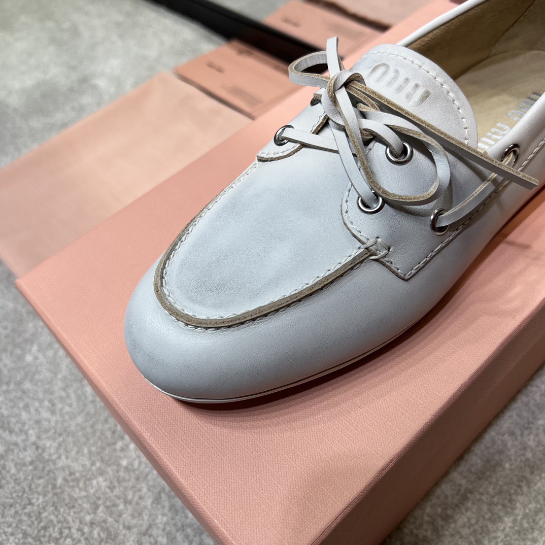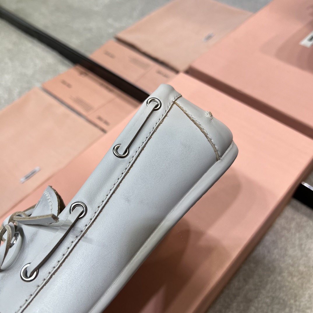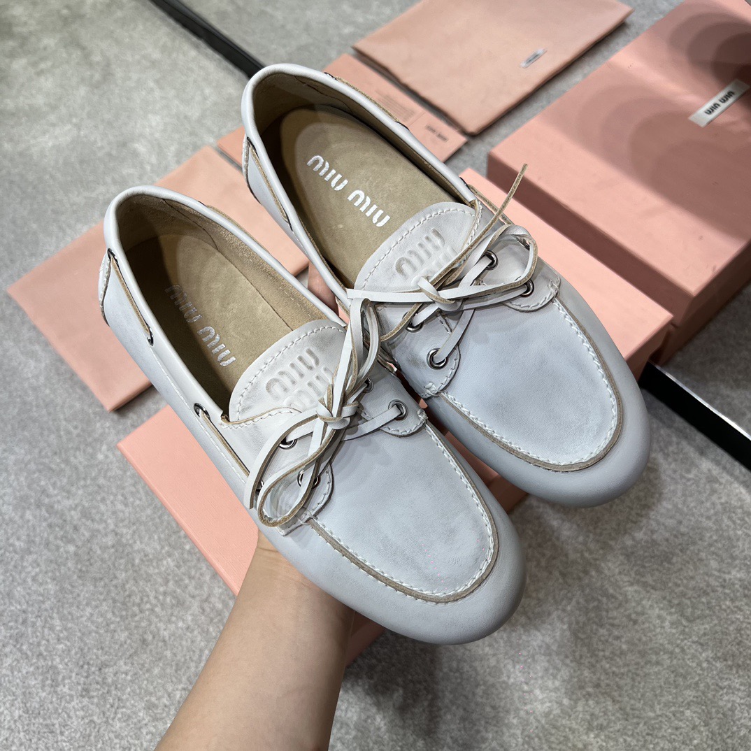 미우미우 블리치드 가죽 보트 슈즈