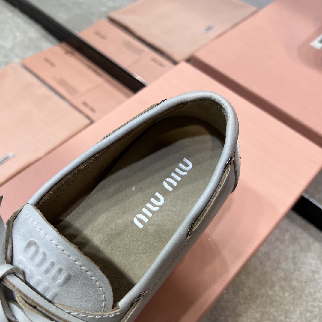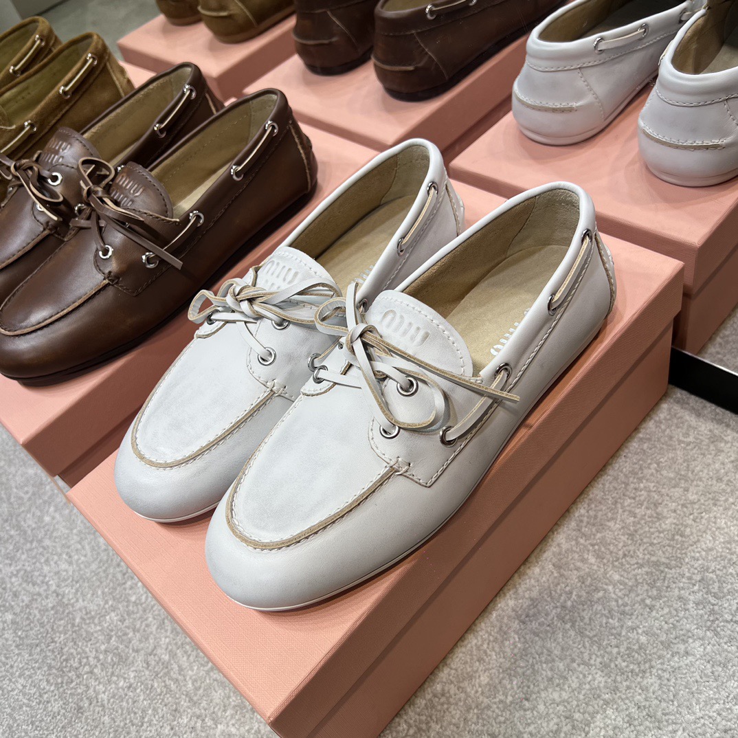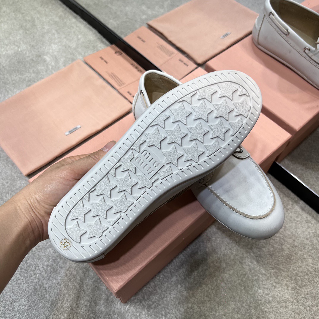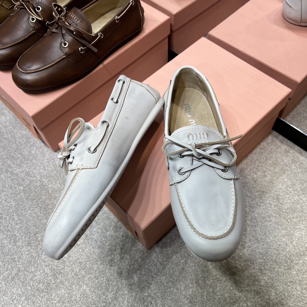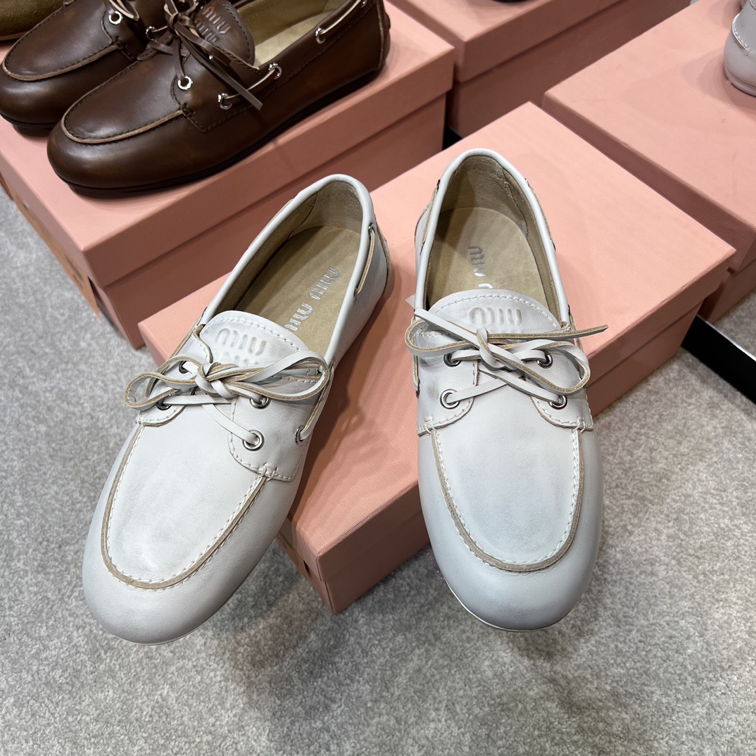 미우미우 블리치드 가죽 보트 슈즈