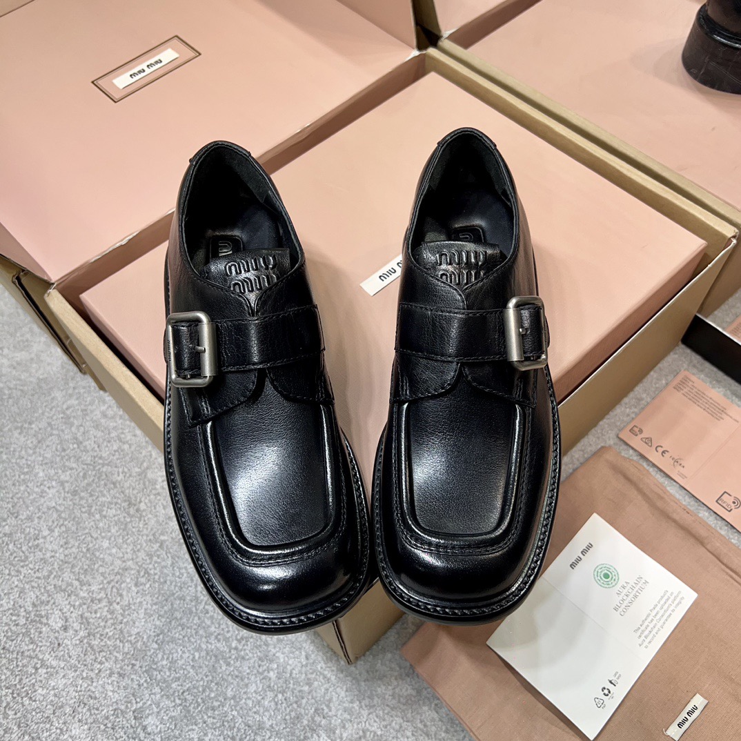 미우미우 레더 브로그 슈즈