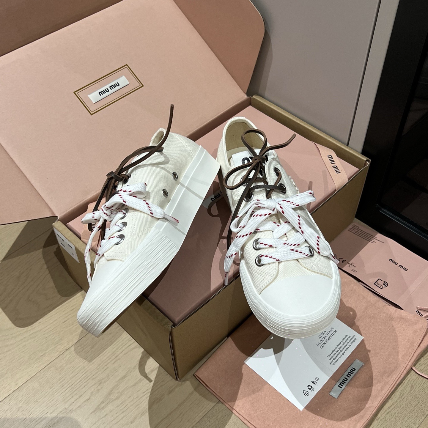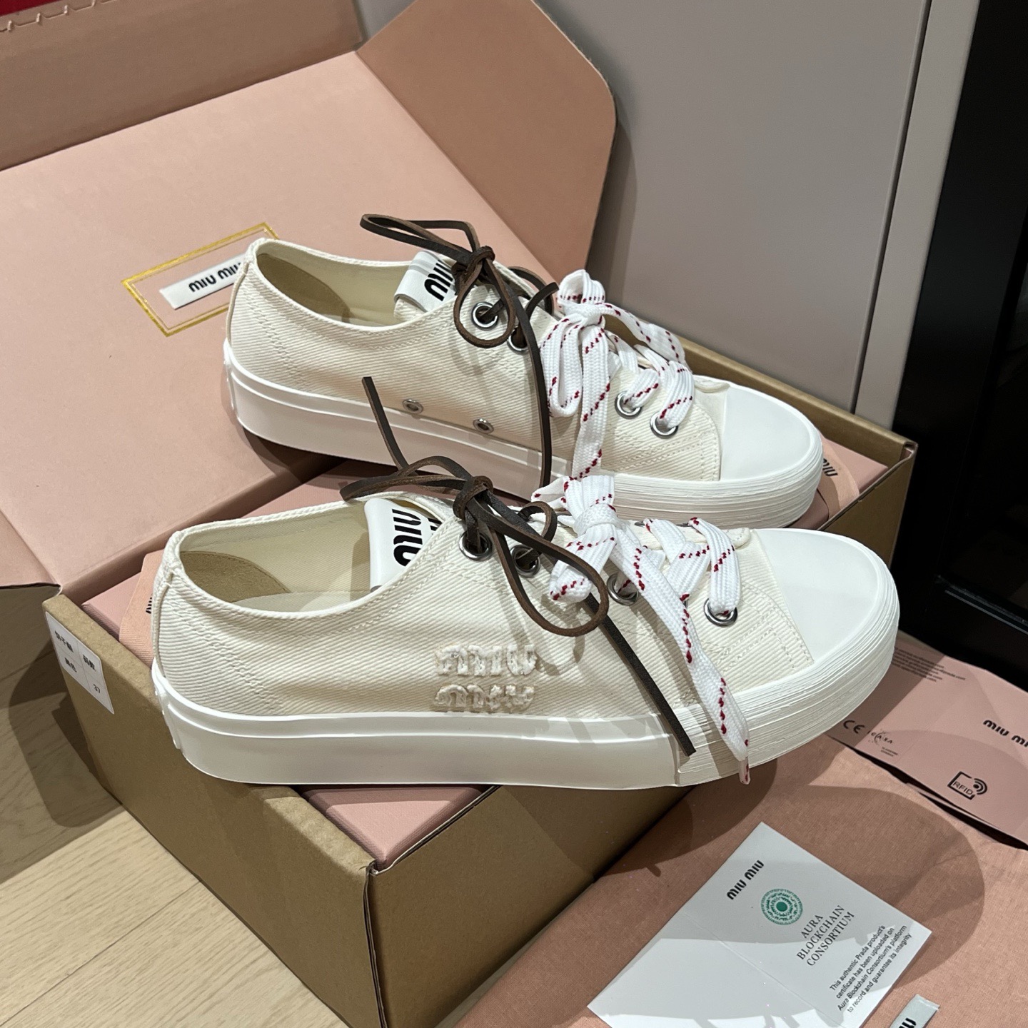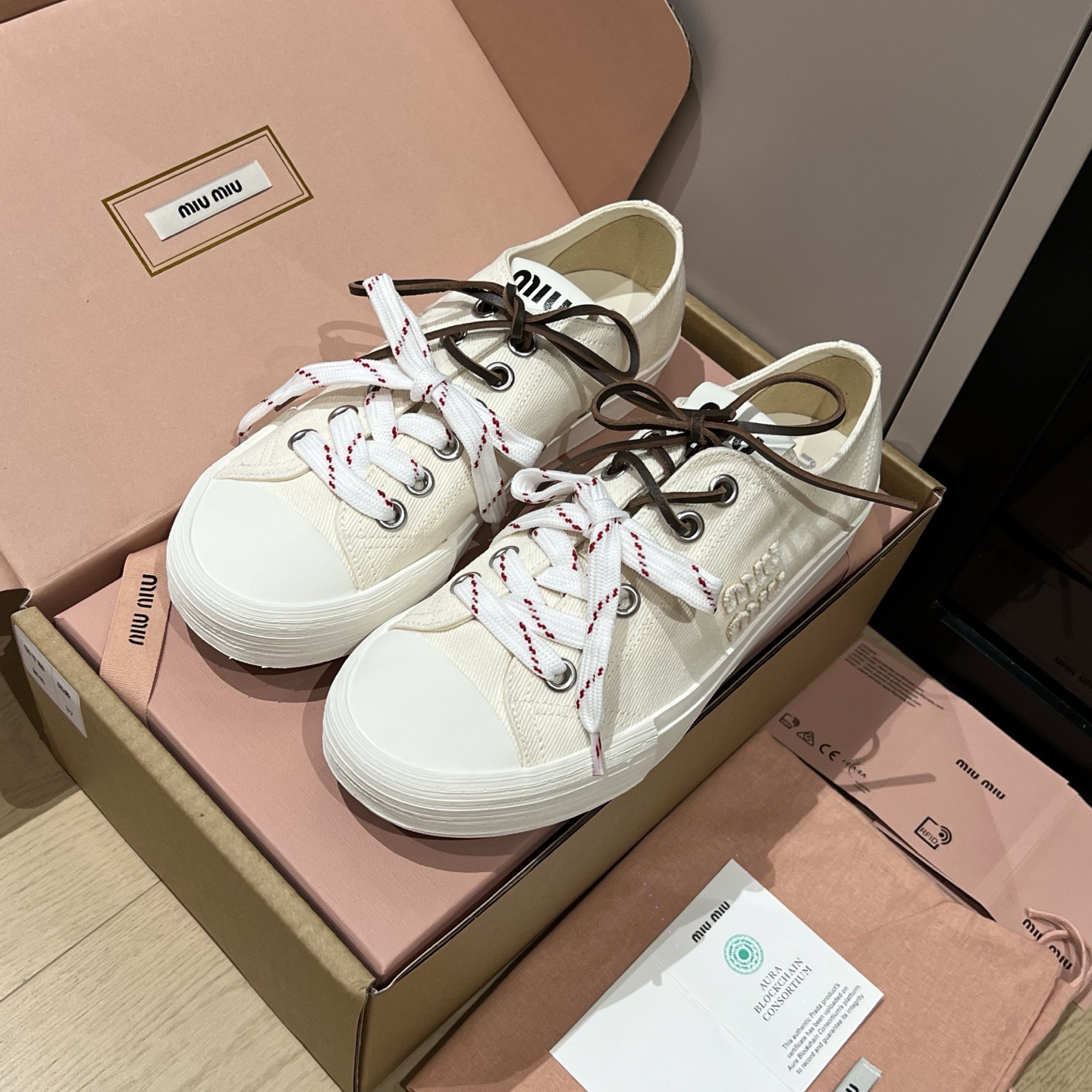 미우미우 워시드 데님 스니커즈